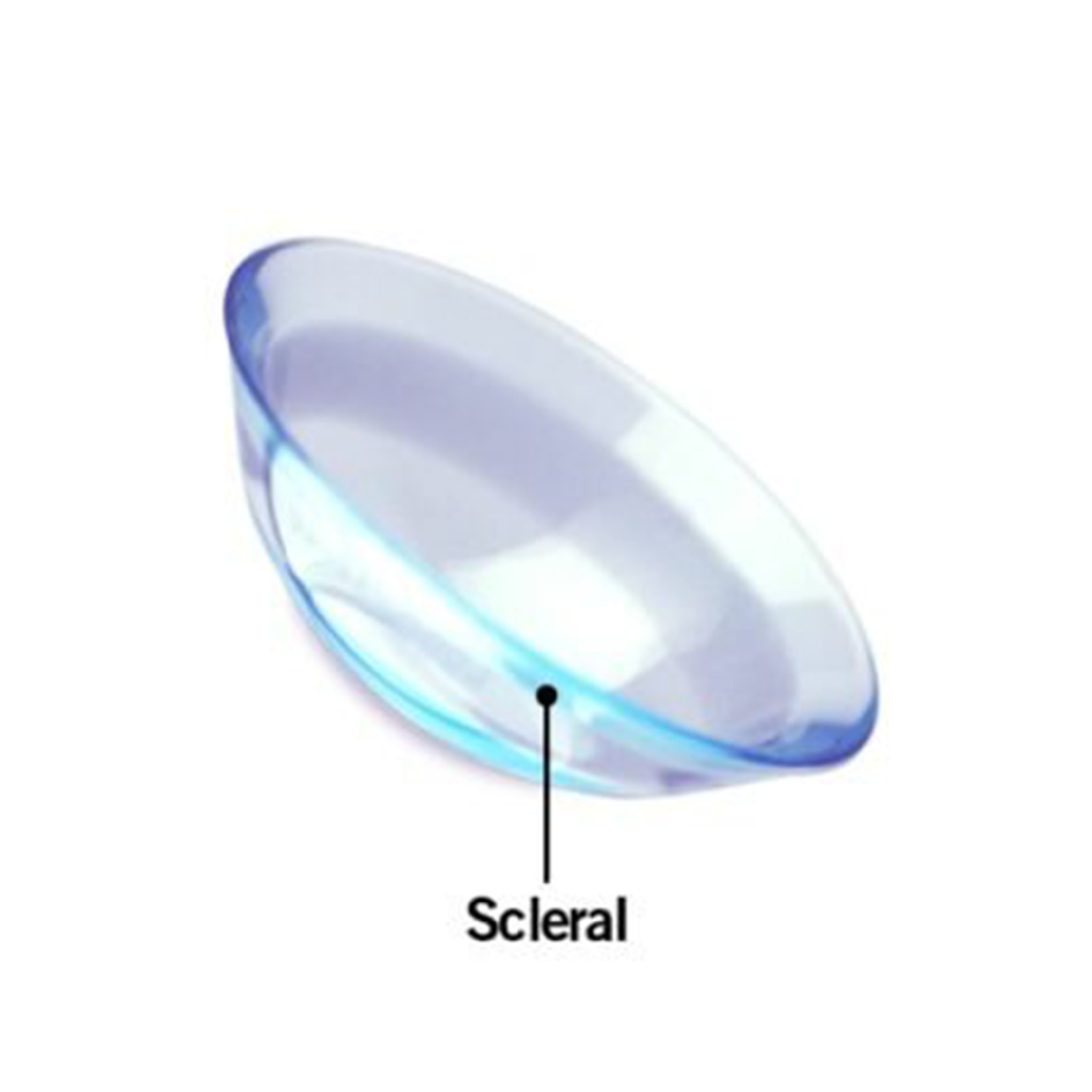 Scleral lenses are a type of contact lens that you wear on your eyes. Unlike the more common soft contact lenses that mainly rest on the cornea of your eye, scleral lenses are larger and cover more of the eye surface. They extend beyond the cornea and cover parts of the surrounding sclera (the white of your eye).
